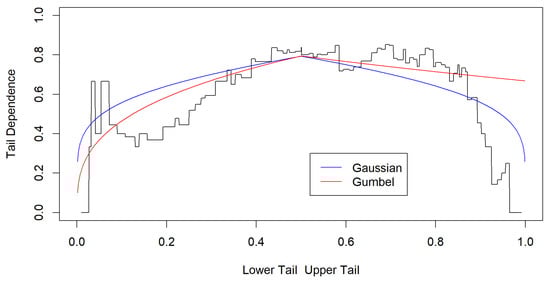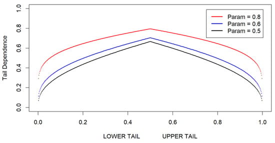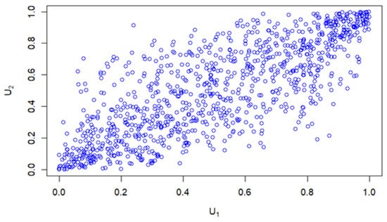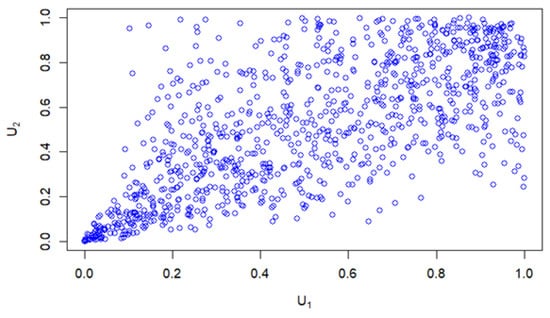 Although the elliptical and Archimedean copulas are implicit, elliptical copulas can use Pearson’s linear correlation, Kendall’s , or Spearman’s for the measures of association. Archimedean copulas use Kendall’s or Spearman’s as their measure of association, see (). For the linear copula regression functions, the coefficients will be related to Pearson’s correlation, see (), which is required for the estimation of their maximum likelihood estimates.