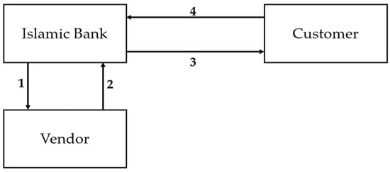In Islamic law, charging a fixed profit on the sale of goods is permissible as it entails exchanging money for goods (Habib 2018). Consequently, the Islamic bank does not utilize loans when financing customers. Instead, a sales-based transaction such as Murabaha is utilized for this purpose (Habib 2018). In a Murabaha transaction, the Islamic bank agrees with a customer for the purchase of an item to be settled on deferred payment terms, but spot payment is also allowed (Schoon 2016). A vital feature of the Murabaha contract is that the Islamic bank must disclose to the customer the cost and the markup added to the item before the contract is concluded (Zineb and Bellalah 2013). The Islamic bank must, however, effectively enter into two contracts to complete a Murabaha transaction (Visser 2009). The first contract is purchasing the item from a vendor based on the customers’ specifications. In this way, the Islamic bank takes ownership of all related risks of the item, though the Islamic bank will usually secure a promise from the customer to purchase the item, thereby limiting the risk to the Islamic bank (Usmani 2002; Venardos 2006). Thereafter, the second contract is between the Islamic bank and the customer for the actual sale of the item, payable on deferred payment terms. Figure 1 shows the structure of a Murabaha transaction graphically based on the preceding discussion. The item’s selling price must be fixed; thus, the Islamic bank cannot charge amounts more than the fixed selling price as this would be equivalent to charging interest which is not allowed in Islam (Habib 2018; Usmani 2002). The Islamic bank may take some form of security which is permissible, to protect itself against any default of the payment by the customer; however, late payment fees cannot be charged, and if this does happen, the late payment fees must be donated to charity as this amount will be tantamount to interest (Habib 2018). The Islamic bank can provide discounts or allow for early settlement; however, this is at the discretion of the Islamic bank and cannot feature as a condition in the contract with the customer (Usmani 2002).
