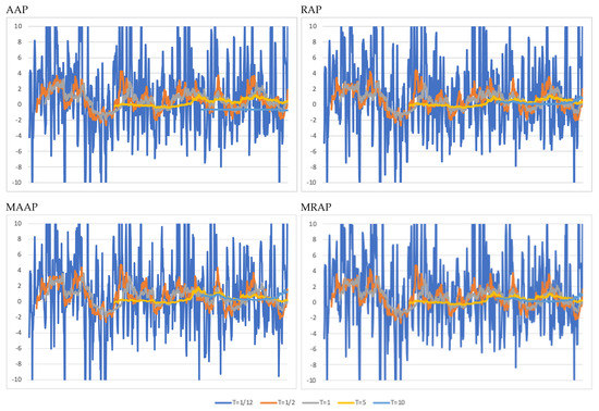 Recalling that the “mean” portfolios—MAAP and MRAP—are built based upon the observation of all recommendations over the entire 15-year period, their performance cannot be directly compared with that of the other portfolios. Still, as in the case of standard portfolios, in relative terms, we can conclude that mean absolute spreads seem to perform better than mean relative spreads (MAAP Sharpe ratios range from 0.360 to 0.365, while MRAP ratios range from 0.274 to 0.279).