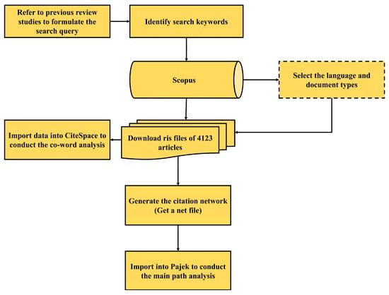 For this study, the Scopus database was chosen as the primary data source due to its recognized status and acceptance within the scholarly community. Scopus is hailed for its comprehensive coverage, high-quality data, and wide-ranging, influential journal listing, making it an optimal choice for research endeavors such as MPA and bibliometric studies (Rejeb et al. 2022b; Sweileh 2018). The process followed in our review is demonstrated in Figure 1.