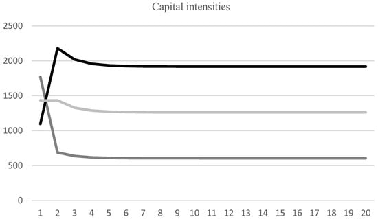 - The solid line represents the capital intensity of a perfectly competitive economy.