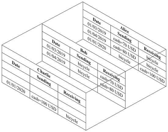 As an example, let us imagine that Alice buys from Bob two bicycles in 2019 which are identical in every possible way: One bicycle is purchased in March for USD 70 and one bicycle is purchased in April for USD 80. In January 2020, Alice sells one bicycle to Charlie for USD 100. To record the transactions, Alice proposes transaction entries over a system managed by Ivan. Bob and Charlie accept, Ivan verifies the validity of the transactions, and the transactions are entered in a shared record. This is triple-entry bookkeeping. However, the following question arises: What was Alice’s profit from the transaction with Charlie?