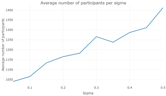 Table 2 reports the simulation results of calculating the number of required blockchain participants in order to achieve a significant result, using 1 million iterations with increments of 100 participants. We can see that the required number of participants was fairly small. Notably, the average number of required blockchain users was 1183, which represents 0.12% of the total assumed population of the smart city in our use case. The results indicated that just a tiny fraction of the inhabitants of the smart city would need to participate in order to create a representative, statistically significant spending distribution. The learned insights could be utilized by either the policy and decision of the smart city in order to optimize the budget allocations according to the people’s wants, or they could be directly implemented through smart contracts in such a way that, e.g., property taxes and other utilities and fees are directly routed and allocated according to the voted spending preferences. Since a small sample would already replicate a statistically significant proportion of the preferred spending distribution of the whole population, the budget resources would be optimally allocated and frictions, costs, and spending of non-productive money minimized.