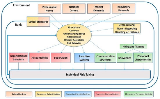 Several researchers have contributed to the field of risk culture, as reported by (). These researchers performed a systematic literature review and developed a comprehensive model of risk culture within the context of the external environment and bank management control systems. The risk culture model of () is depicted in Figure 1 below.