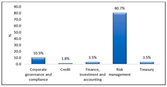 The majority of the respondents were employed in the risk management function (80.7%) of their respective banks, followed by the departments of corporate governance and compliance (10.5%), finance, investment, and accounting (3.5%), treasury (3.5%), and credit (1.8%).