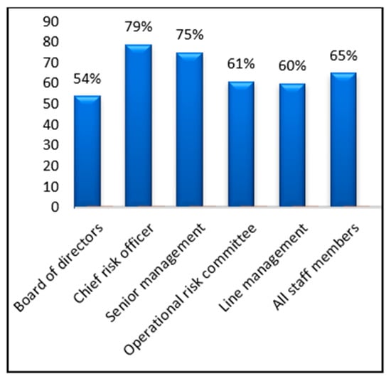 As indicated in Section 4.2.1, the participating Ghanaian banks valued the effective management of operational risk as a notable contributor to enhancing the financial stability and sustainability of banks and serving as a competitive advantage in their environment. However, the awareness among Ghanaian banks of the irrefutable value of risk culture could be further enhanced by improving the values, norms, and culture prevalent in the business environment and by improving the knowledge of risk culture among the staff members of banks in Ghana, as envisaged by ().