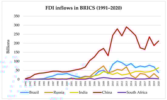 FDI inflows in BRICS countries.
