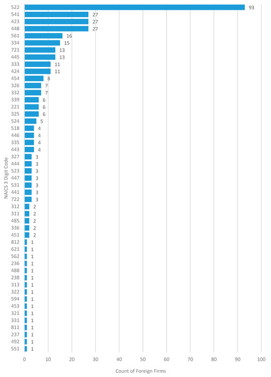 In relative numbers, banking operations connected to international companies are highly noticeable in the state. This may be related to the strong networks of large multinational banks across international locations. The finding demonstrates New Hampshire individual and organization residents’ access to finance and insurance systems supported by global operations. The data also indicate that retail trade has good relative representation of foreign firms, followed by manufacturing, as depicted in Table 4. The findings reveal foreign business interests in accessing local markets and expanding distribution in the state. In addition, foreign companies support manufacturing in New Hampshire, with a noticeable presence across high-tech industry segments.