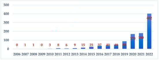 This sub-section deploys the basic information about the research. The data summary according to the Bibliometrix R software (version 4.2.2.) includes the following: 1034 articles published in 280 journals over 16 years (2006–2022), with an annual growth rate of 49.15%, average document age of 2.93, and average citation per document of 20.82%. The results demonstrate that significant academic work has been carried out on ESG reporting by 2198 authors on a global scale. The total number of authors per paper and the co-authorship indicator are measures that reveal the collaboration between scholars (Koseoglu 2016). They stood at a noteworthy 2.65% and 25.15% respectively, while out of 1034 articles, only 183 (0.18%) were single-authored. This implies that academic cooperation in the ESG area is high.
