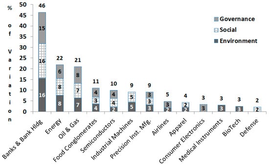 Percent of industry-wide after-market variation explained by the E, S, and G domains from the extant portfolio.