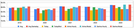 Specifically, the heuristic methods of Avg and Avg Sameday show superior profitability during years marked by significant exogenous shocks, such as the widespread effects of the COVID-19 pandemic in 2020 and the gas price crisis triggered by the Russia–Ukraine war in 2022. These models excel in rapidly adjusting to and capitalizing on abrupt market changes for short-term gain.