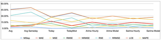 ARIMA Modal/SARIMA Modal: This ‘one-set’ approach uses a single set of model parameters, consisting of the modal (most frequently optimal) parameters among the 24 hourly models from the previous year. This approach aims for a more generalized forecast across all hours, relying on the most common optimal parameters. In other words, the method “modal” selects the value that appears most frequently as optimal in the dataset consisting of the set of hours, in contrast to the hourly method, which instead favors the specific optimal value for each individual hour.