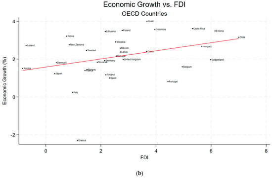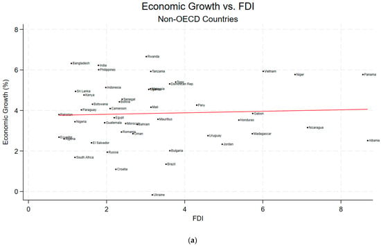 Scatter plots of economic growth vs. FDI for non-OECD and OECD countries.