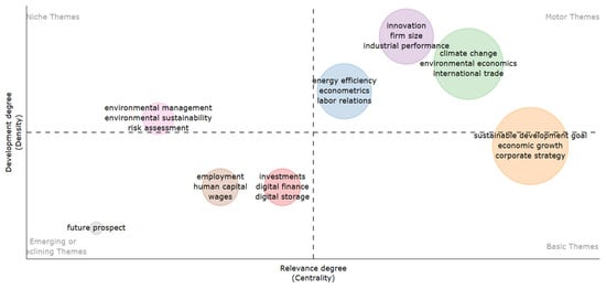 Second, several specific visualization tools were used in the analysis process, including Three Fields Plot, which illustrates the relationships between authors, keywords, and publication sources, as well as Thematic Map, which provides a graphical representation of the main themes and their evolution over time. These tools allow further analysis of thematic areas and support the extraction of scientific conclusions, trends, and perspectives for future research. The research findings at this stage are the basis for continuing the process of research in the direction of constructing a questionnaire and generating conclusions.