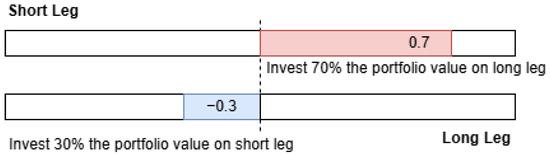 Take as the action. Similar to the observation space (c.f. Figure 4), the action ranges from −1 to 1, representing the investment as a percentage of the portfolio value in the long leg and short leg directions. Investing 50% of the portfolio as a long leg means A = 0.5. Investing 20% of the portfolio in the short leg means A= −0.2.