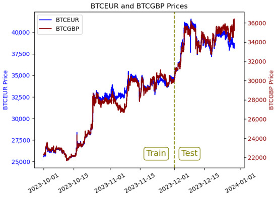 Prices of BTCEUR and BTCGBP.
