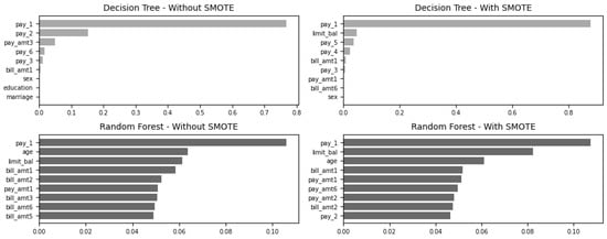 Permutation-1—with or without SMOTE using the default hyper-parameters and scoring using full features (all predictors).