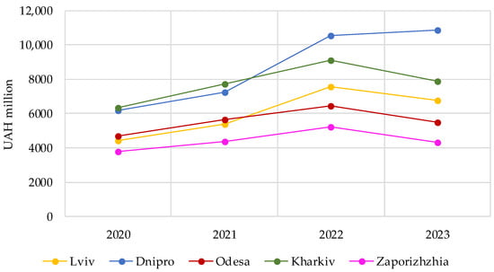 - Open Budget. 2023. Vebsait—State Budget Web Portal of the Ministry of Finance of Ukraine for Citizens. Available online: https://openbudget.gov.ua/local-budget?id=26000000000 (accessed on 22 December 2023).