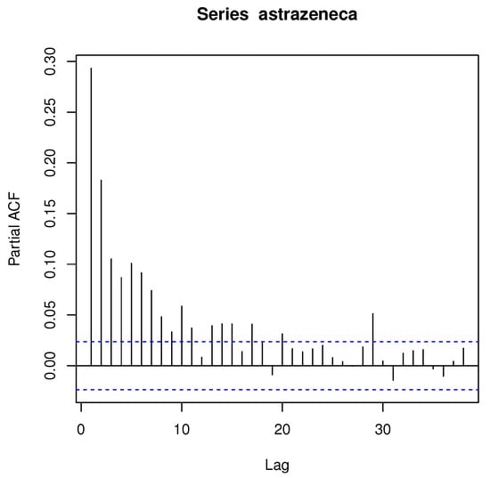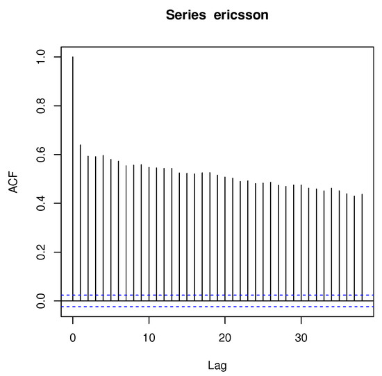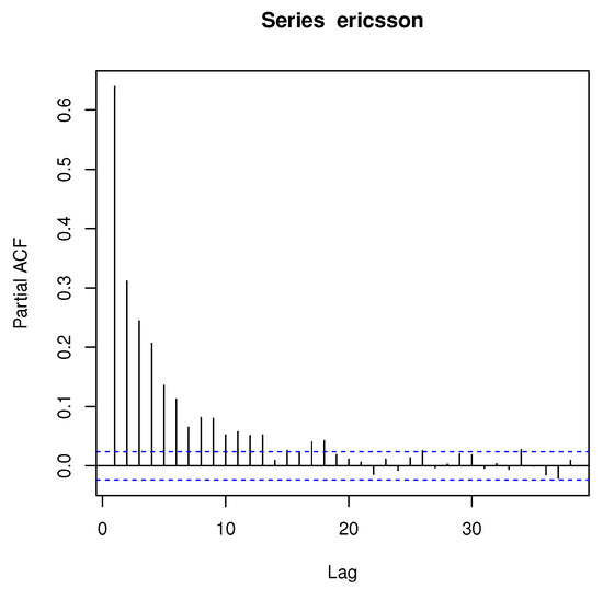 Figure 5, the Ericsson and AstraZeneca time series both display an almost auto-regressive pattern and their PACFs in