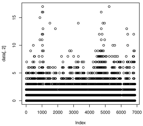 In this section, we analyze the tick by tick AstraZeneca and Ericsson data using the different BINAR(1) models: BINAR(1)P, BINAR(1)NB, BINAR(1)G, and BINAR(1)CMP. These data are downloaded from the Ecovision system and represent the most frequently traded stocks on the Stockholmsbrsen, that opens at 09.30 and closes at 17.20. The AstraZeneca stock series data are collected for the period 2–22 July 2002, wherein the data in this study were aggregated into one-minute intervals of time and are based on minute 5501 to 5800, thus making 300 observations