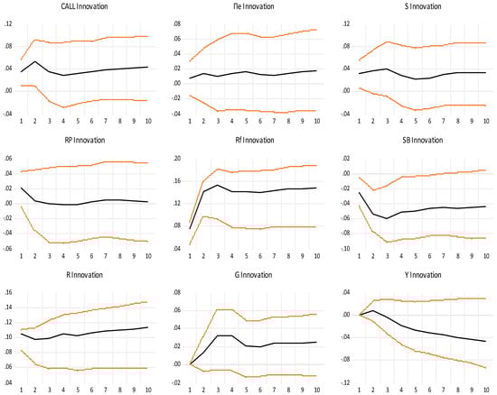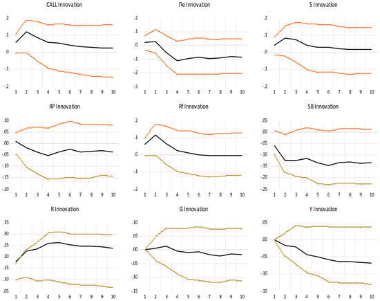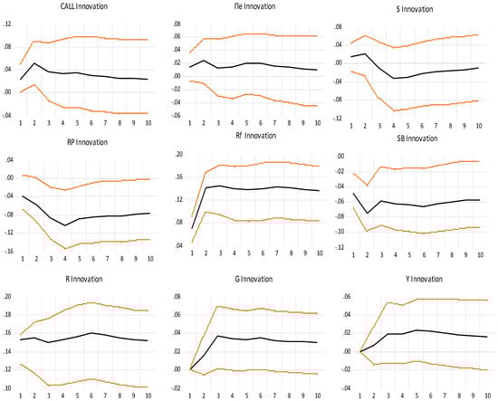 The Impulse Response Function analysis results confirm that the swap basis (SBt), foreign long-term interest rates (Rf,t), and monetary policy variables (Callt) had statistically significant effects on domestic long-term interest rates (Rt), consistent with the earlier Granger Causality analysis results.
