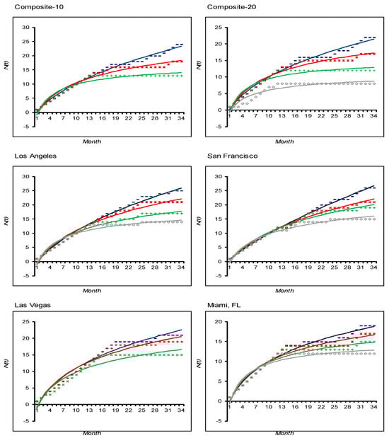 We employ the Composite-10 and Composite-20 indices along with the individual indices for the metropolitan areas of Los Angeles, San Francisco, Las Vegas, and Miami of the S&P/Case-Shiller home price indices. The Composite 10 index is a ten-city average measuring the aggregate market for single-family homes. The Composite 10 index represents a ten-city average that assesses the overall market for single-family homes, encompassing major metropolitan areas such as Boston, Chicago, Denver, Las Vegas, Los Angeles, Miami, New York, San Diego, San Francisco, and Washington Metropolitan area. The Composite 20 includes the same ten areas along with Atlanta, Charlotte, Cleveland, Dallas, Detroit, Minneapolis, Phoenix, Portland, Seattle, and Tampa.