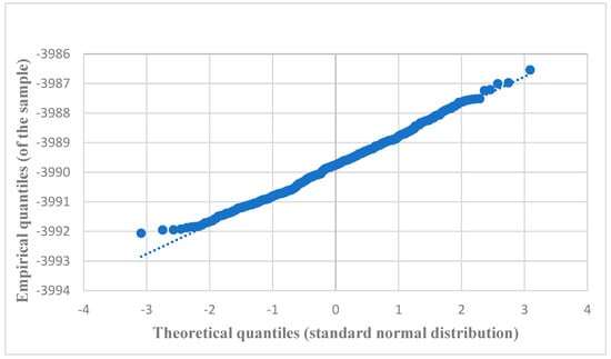 Since the data used here were reference-date-related and were not considered over a longer period, the requirement of time-series independence was fulfilled. To verify the normal distribution assumption, the residuals can be graphically rendered in a “quantile-quantile diagram”, enabling a comparison between the quantiles of the data and the quantiles of the normal distribution (Marden 2004, p. 606). Computationally, the normal distribution of the residuals can be demonstrated by the Jarque–Bera test. Here, the kurtosis of the underlying residuals and the skewness were considered to check whether a normal distribution existed.
