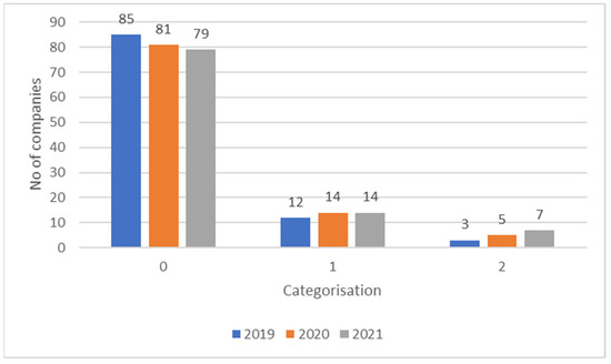 In order to arrive at the 100 largest companies2,we firstly gathered data from their financial statements. After we came up with the 100 largest companies operating in Greece throughout the study period, we then collected information from their non-financial statements on the areas of corporate governance and corporate social responsibility and/or sustainable development. Unlike other researchers who obtain data for their research from both official company websites and any published information, we chose, for the sake of credibility, to limit ourselves exclusively to the official reports submitted by the companies, either in the form of a social report/CSR report/sustainable development report, or as part of their consolidated reports. Furthermore, we chose not to make an overall rating of the CSR criteria we examined, nor the approach of assigning weighting coefficients per criterion, considering that these are purely personal assessments without the possibility of calculating the error and the margin of error they contain. At this point, we must point out that our methodology is based on an assessment of the information in the reports we have collected, but we do not know whether this is true. In order to assess, to a greater extent, the reliability of the information provided, we have also chosen to record whether, and to what extent, each report and its contents have been submitted for external evaluation. In particular, we set the value 0 if the report has not been assessed by an external body/auditor, value 1 if the report has been assessed but only on the basis of the content they have been given and a value of 2 if it has been assessed both on the basis of the report and with additional audits (Figure 1).