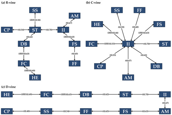 | R-vine versus C-vine | 750 | 0.029 | −1.597 | 0.110 |
