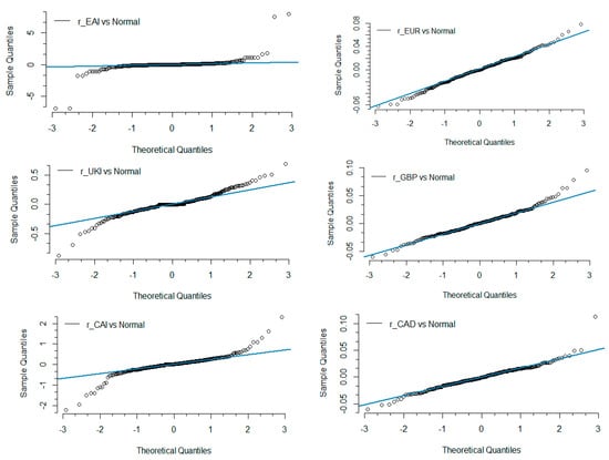 By examining the QQ plots, we embark on a comparative exploration of two probability distributions by juxtaposing their respective quantiles. This enabled us to discern how the dataset’s distribution contrasts with that of a normal distribution. Evidently, these QQ plots affirm that the data’s distribution, both within the context of inflation rates and exchange rates, significantly deviated from the norm. Notably, the quantiles of the samples deviated distinctly from the quantiles characterizing a standard normal distribution. This empirical evidence highlights the non-normal nature of the datasets under scrutiny and further illuminates the distinctive distribution characteristics that set them apart.