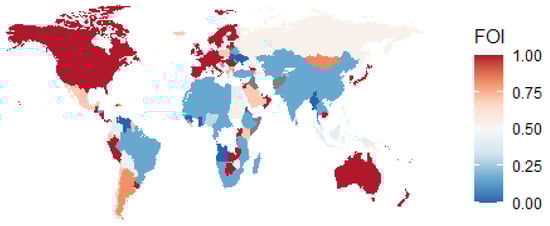 Financial Openness Index. Notes: Average Financial Openness Index (FOI) of Countries worldwide. Source: Authors’ Calculation based on Chinn and Ito (2006).