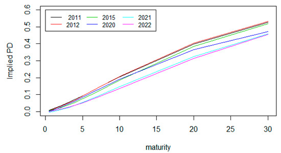 3.2.2. Term Structure of CDS-Based Implied Default Probability