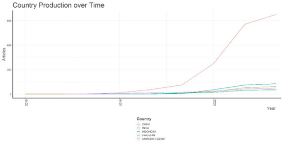 From a dynamic aspect, the number of publications shows a relative increase over time. There is a significant leap during the period for China, while the trend is more gradual for Pakistan, India, United Kingdom, and Indonesia (see Figure 6).