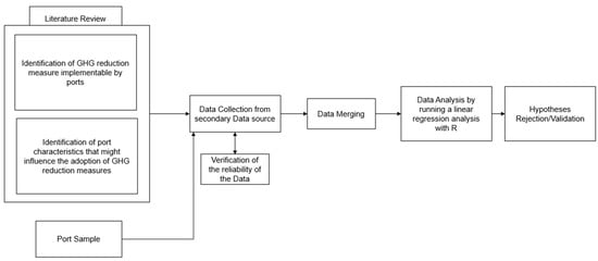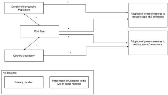 Furthermore, in our study, we employed linear regression analysis to examine the significance of the relationships between the adoption of GHG reduction measures and port characteristics. While this approach provides insights into the statistical significance of the relationships, it does not establish causal relationships. Therefore, we can only make assumptions about the causality. Future research could explore the underlying mechanisms through which, in European Union ports, density and port size influence the adoption of green measures and how these can differ from port to port.