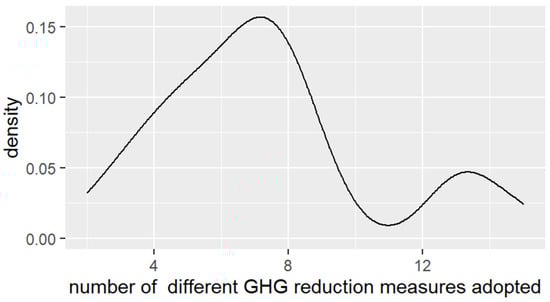 The 33 busiest European cargo and container ports have adopted on average seven different green measures to reduce their GHG emissions, with a standard deviation of seven. This reveals that the European ports are not moving at the same pace of implementing GHG emissions solutions to become carbon neutral. Figure 4 provides a visual representation of the distribution in the adoption of GHG reduction measures by the busiest European ports. Notably, five ports—Gothenburg, Hamburg, Marseille, Rotterdam, and Tallin—have adopted more than 13 different measures, indicating their strong commitment to becoming carbon neutral. On the other hand, six ports—Constanta, Gioa Tauro, Le Havre, Leixoes, Taranto, Venspils—have adopted four or fewer different measures, indicating the potential for improvement in their GHG reduction efforts. Table 4 showcases the descriptive statistics.
