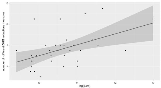 To further investigate the impacts of the size, population, and GDP per capita variables, we ran multiple linear regression models. These suggested that the potential positive effect the port size might have on the adoption of different green measures by European ports is interlinked with the effect of the GDP per capita and the surrounding population (see Table 9 and Table 10). The adjusted R-squared does not vary much between model 2 and models 16 and 18. Furthermore, the beta values of the GDP per capita and log(population) become insignificant when they are in the same model as log(size); however, they are significant when put together without log(size).