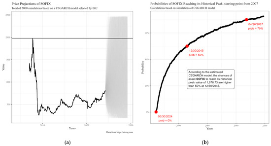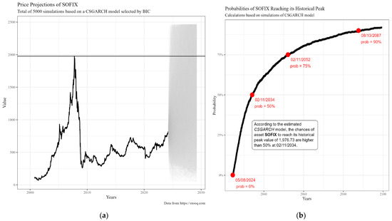 Predictions about the future SOFIX levels and, more in particular, about the probability of them reaching their peak values of 2007 in the Bulgarian literature have been made only by financial analysts, while those with scientifically based argumentation are missing. Minchev (2024a, 2024b) in his analyses, makes a simple extrapolation forecast of its future quotes. Assuming that the third stage (the lost quinquennium for the Bulgarian Stock Exchange) is already over, and expecting an annual increase of 50% compared to its average of the last twenty years—that is, up to 15% growth per year—he predicts that the SOFlX index will reach its peak of 2000 points in 6.9 years, or in 2031. This forecast assumes that the index will move into the next phase of long-term growth rather than relying on an analysis of time series with appropriate econometric methods and models. In previous studies on the dynamics of SOFIX levels, the application of GARCH methods led to different conclusions.