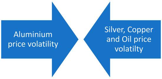 Aluminum, also known as aluminium, shows a weaker interaction with the rest of the commodities, as can be understood from Figure 10. Specifically, according to the literature, this precious metal is under pressure from the volatility of the price of zinc and lead (Gong et al. 2022). At the same time, according to Figure 10, aluminum has a bidirectional effect with silver and copper. In particular, the researchers have presented a correlation of these three metals since 1985 (Chevallier and Ielpo 2013; Oliyide et al. 2021; Umar et al. 2021). However, this relationship is noteworthy in the Chinese market, where the literature states that the specific metals interacted with each other in the period 2009–2017 (Hu et al. 2020).