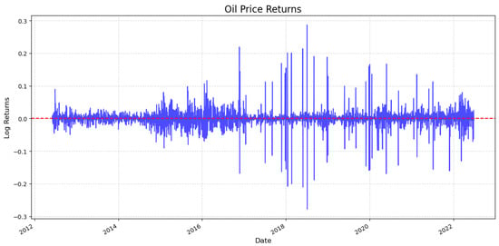 Figure 3 illustrates oil price returns from 2012 to 2022, revealing two significant periods of heightened volatility. The 2015–2016 period shows increased fluctuations, attributable to an oversupply of crude oil, a slowdown in global economic growth and the strength of the U.S. dollar. The 2020 spike coincides with the COVID-19 pandemic which led to extreme price movements due to sudden demand shocks, quarantine measures, travel restrictions and widespread economic uncertainty.