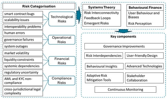 The risks from vulnerabilities in the technical infrastructure, such as smart contract bugs, scalability issues, and interoperability problems, are technological risks (P. Sharma et al., 2023). These risks can compromise platform security and lead to financial losses and loss of trust from users. Human errors, governance failures, and system outages are the sources of operational risks, which discourage user adoption and amplify other vulnerabilities (Aquilina et al., 2024). Market volatility, liquidity constraints, and systemic dependencies are all financial risks that threaten the ecosystem’s stability. Regulatory uncertainty, AML and KYC noncompliance, and cross-jurisdictional legal complexity may lead to fines or market exclusion and are, therefore, compliance risks.
