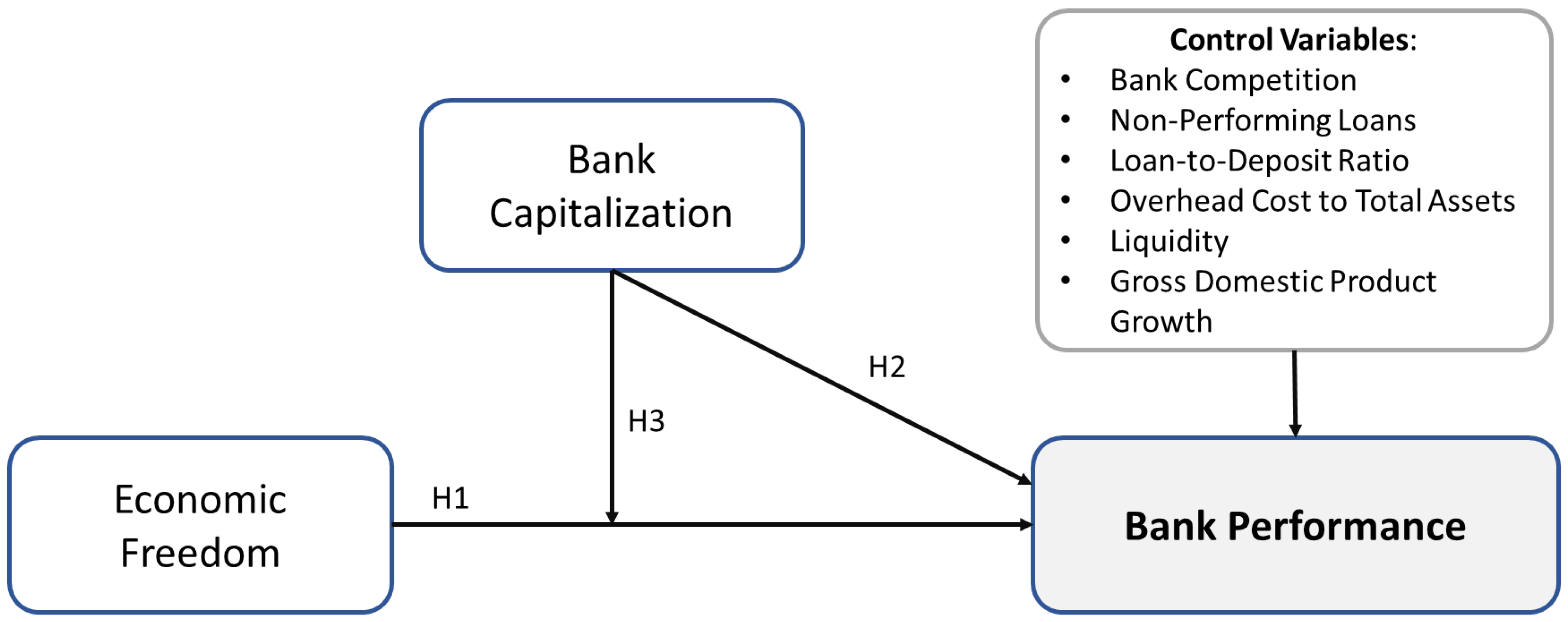 In line with these aims, this study seeks to answer three core questions: does economic freedom have a significant impact on bank performance, what is the role of bank capitalization in directly influencing performance, and how does capitalization moderate the relationship between economic freedom and bank performance across different institutional contexts? By addressing these questions, the study contributes both theoretically, by clarifying the conditions under which liberalization improves or undermines bank outcomes, and practically, by informing regulators and policymakers on the importance of strengthening capitalization in tandem with financial liberalization.