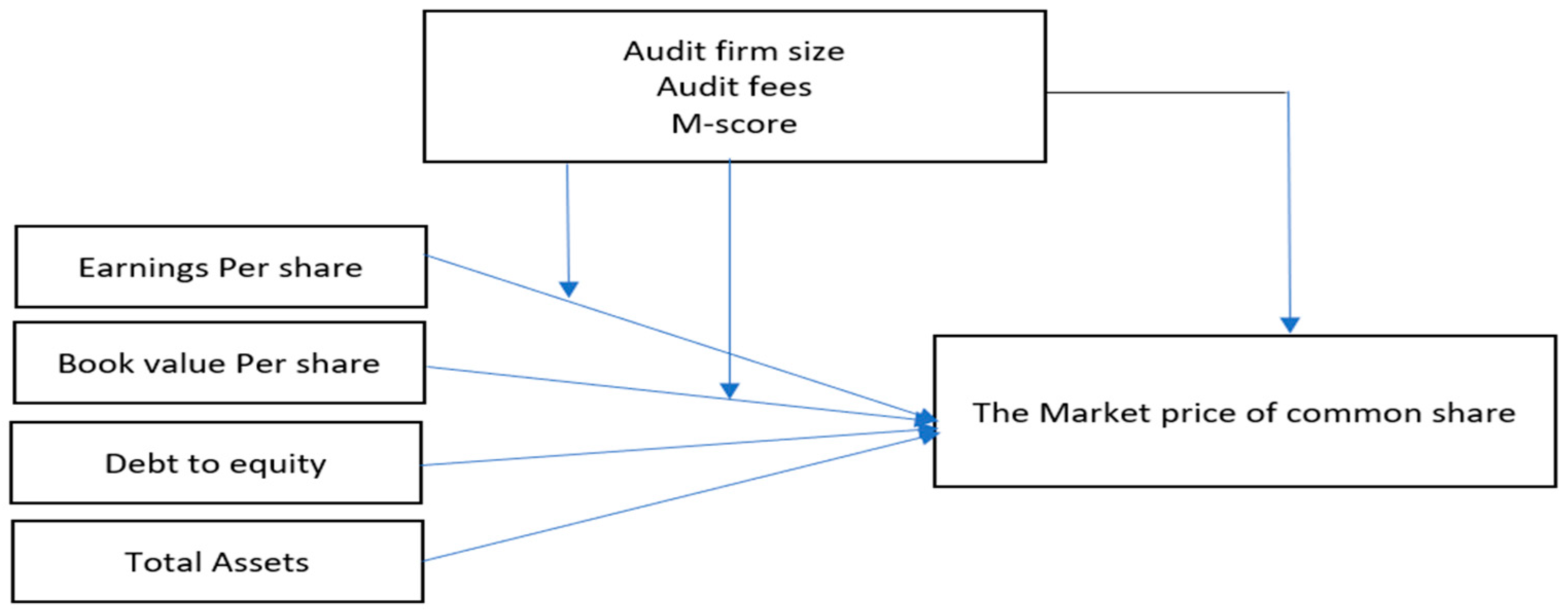 Figure 1 illustrates the relationships among the study’s key variables, including the moderating role of audit quality on the value relevance of accounting information.