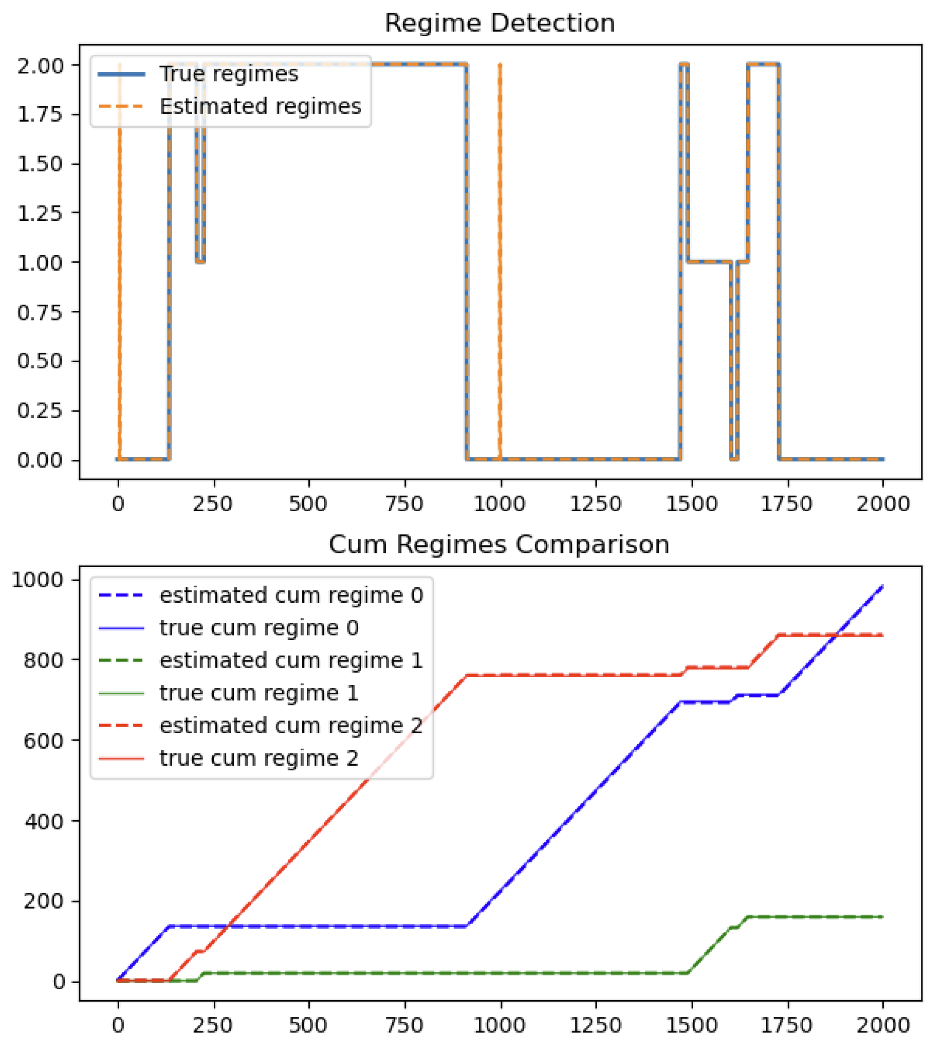 The associated historical effective sample size plot and regime detection plot are given in