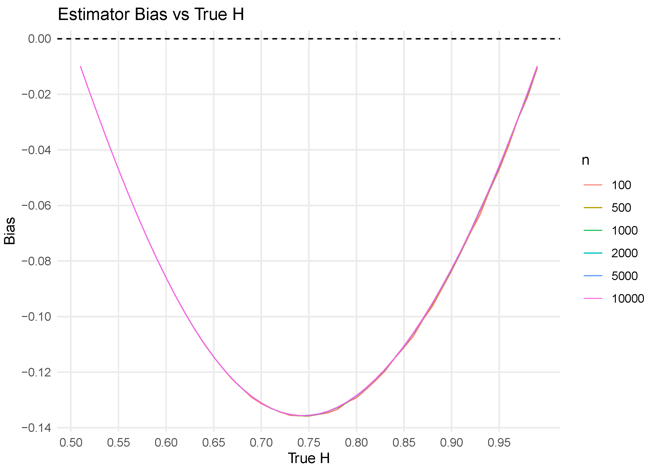 Biagini et al., 2008). Accurate estimation of the Hurst exponent is therefore critical: even small biases can propagate into systematic option mispricing (
