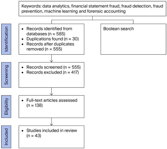 Reliable financial reporting is critical for maintaining market confidence and guiding stakeholders’ decision-making, yet traditional audit methods often fail to detect sophisticated fraud schemes that are hidden within large volumes of transactional data. This systematic literature review synthesizes 43 empirical and theoretical studies published between 2010 and 2024 that utilize data analytics techniques for the prevention and detection of fraud in financial statements. Following the PRISMA guidelines, we conducted a four-phase review—identification, screening, eligibility assessment, and inclusion—to ensure transparency and reproducibility. Our analysis categorizes techniques into supervised machine learning classifiers (e.g., decision trees and neural networks), statistical anomaly detection methods, network-based analyses, and real-time monitoring frameworks. We evaluate each approach’s comparative effectiveness, highlight persistent challenges such as data imbalance, model interpretability, and governance constraints, and also trace evolving methodological trends over time. The review reveals that integrating predictive analytics and continuous monitoring into accounting information systems can transform audits from reactive investigations into proactive fraud prevention mechanisms. We conclude by proposing a future research agenda focusing on developing explainable AI models for audit applications, establishing robust data governance frameworks to support automated monitoring, and conducting longitudinal field studies to assess the real-world impact of analytics-driven controls. Full article