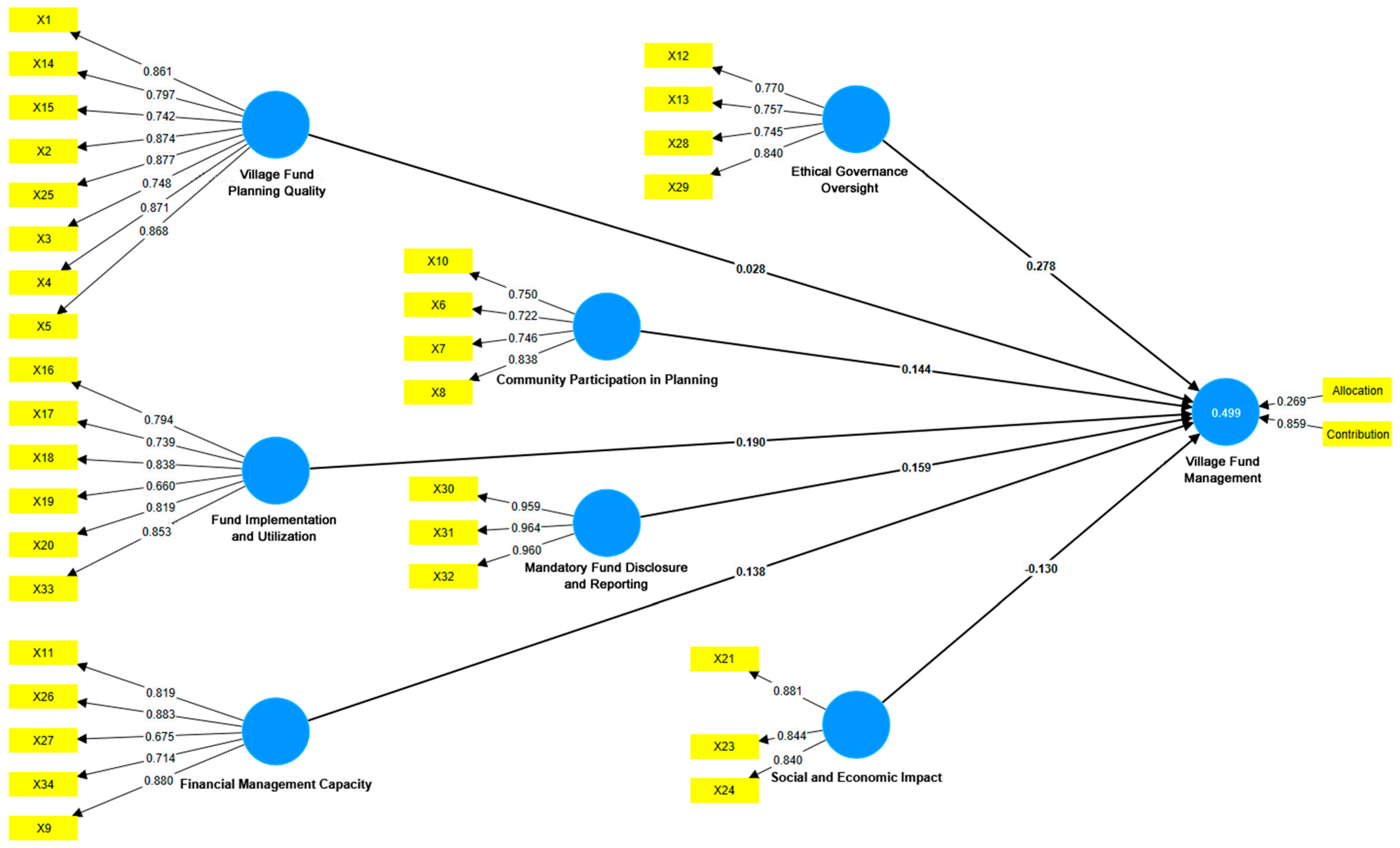 | Coefficient of Determination | Village Fund Management | R2 = 0.499 R2 Adjusted = 0.482 | This value indicates that the seven factors collectively explain 49.9% of the variance in village fund management, which is considered a moderate predictive power. |