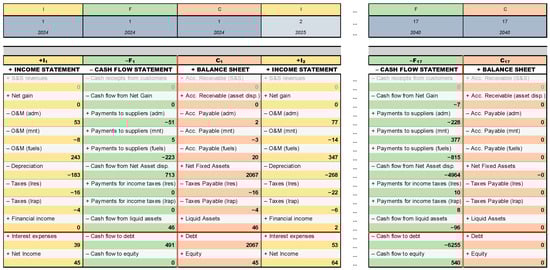 The architecture of our accounting-and-finance system is developed within a spreadsheet software, which is publicly available at https://doi.org/10.5281/zenodo.17381603. It includes a first section that collects the inputs, classified into five classes: