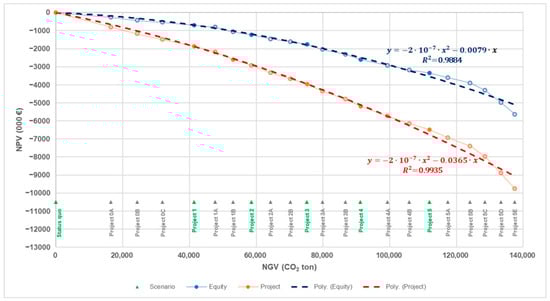 We start from what we call the “Engineering model”, incorporating a very large number of operational inputs, which feed into a robust accounting-and-financial model, capable of assessing the economic profitability across multiple scenarios. More specifically, we manage a total of 2303 inputs across five “green scenarios”, enabling simultaneous analysis and comparison, matching economic profitability with environmental sustainability. The primary output is represented by the “Net Value” curve, which illustrates the combination of Net Present Value (NPV) for the value creation and the Net Green Value (NGV) for CO2 emission reduction. As the NGV increases, both project NPV and equity NPV decrease, testifying of a decreasing relation between economic value and environmental value. In other words, we find a trade-off between “being greener” and “being richer”. The Net Value curve is then a Pareto frontier quantifying how much value the company must give up to increase the degree of its environmental sustainability. The ratio of the NPV to the NGV supplies the “shadow” prices of a one-ton CO2 reduction, providing precise quantification of IREN’s sacrificed value for every ton of CO2 reduction in each green scenario. The shadow prices are increasing with respect to the degree of sustainability of a replacement policy: the more environmentally friendly the replacement policy adopted, the greater the financial sacrifice. To further investigate the functional relation between the NGV and the NPV, we expand the analysis to additional 16 green scenarios, up to a total of 21 scenarios. This extended scope offers a comprehensive view of the NPV sacrifice concerning CO2 total reduction ranging from 0 to 140,000 tons. The outcome reveals a strictly decreasing, concave function of NGV, with an increasing marginal rate of substitution, as verified by a degree-2 polynomial regression with a remarkably high coefficient of determination (R2 = 0.9935).