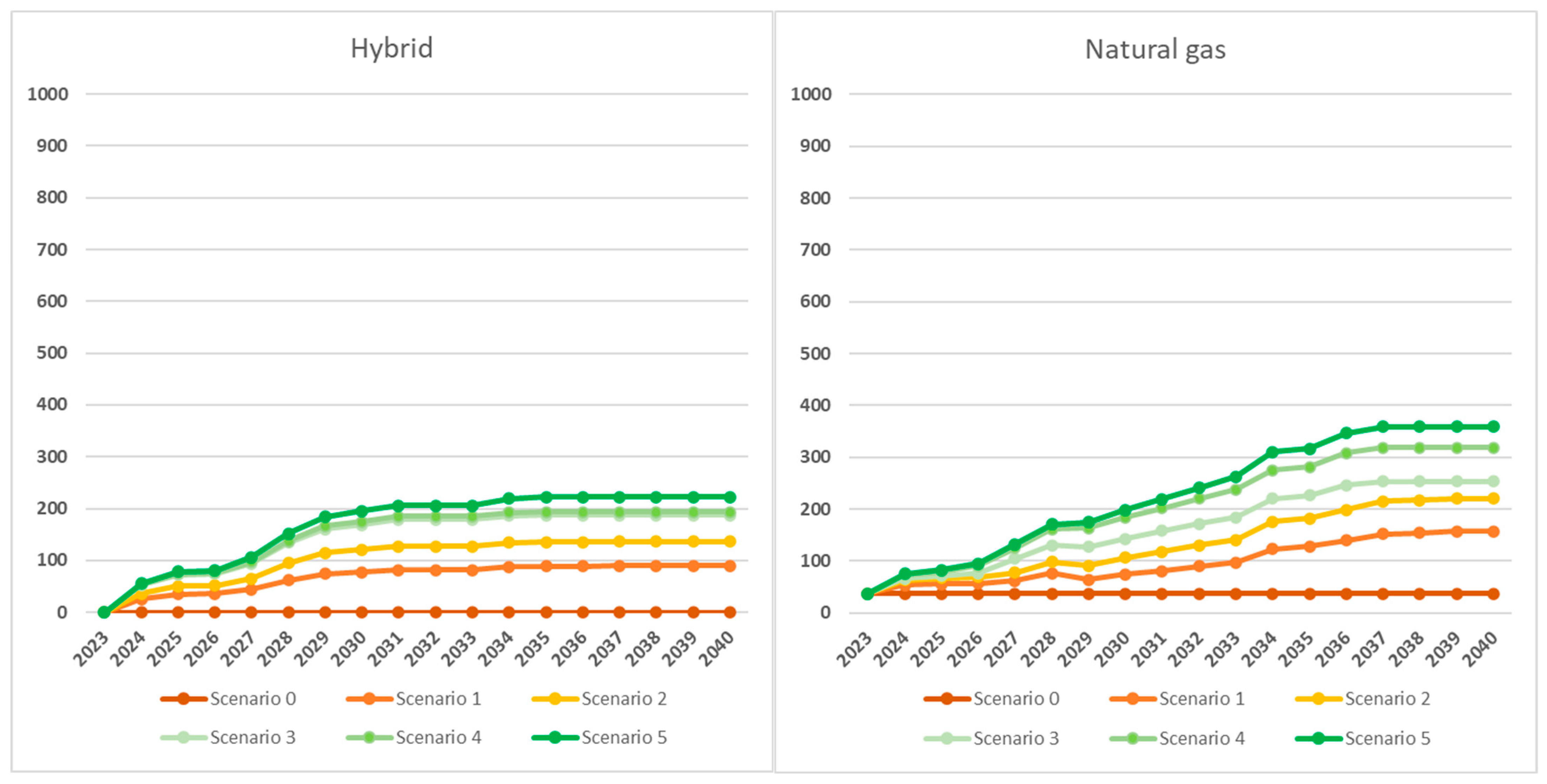 More cautious scenarios (Scenario 1) would undermine sustainability targets; more green-aggressive scenarios (Scenarios 3–5) jeopardize essential waste management operations during the period of workforce and supplier adaptation. According to IREN’s management, shadow prices do inform, but cannot override such multidimensional judgments, especially given that operational departments may struggle to support a total or near-total conversion from vehicles with traditional fuels to electric or natural gas. While these options are compatible with the service, they demand cultural adaptation by operational workers and managerial adaptation by coordinators, who, for example, will have to gradually organize vehicle rotations to allow complete electric recharge cycles. Even corporate maintenance garages, whose mechanics currently specialize in diesel engines (which are prevalent today), will have to train their personnel and equip their facilities to service alternative-fuel vehicles, with a gradual transition. Finally, vehicle suppliers themselves are progressively expanding their production of green vehicles, enhancing their reliability over time. However, extended delivery times are common, especially for “bulk” orders. A balanced green policy will ensure better alignment with the procurement capabilities of IREN’s domestic partner suppliers.