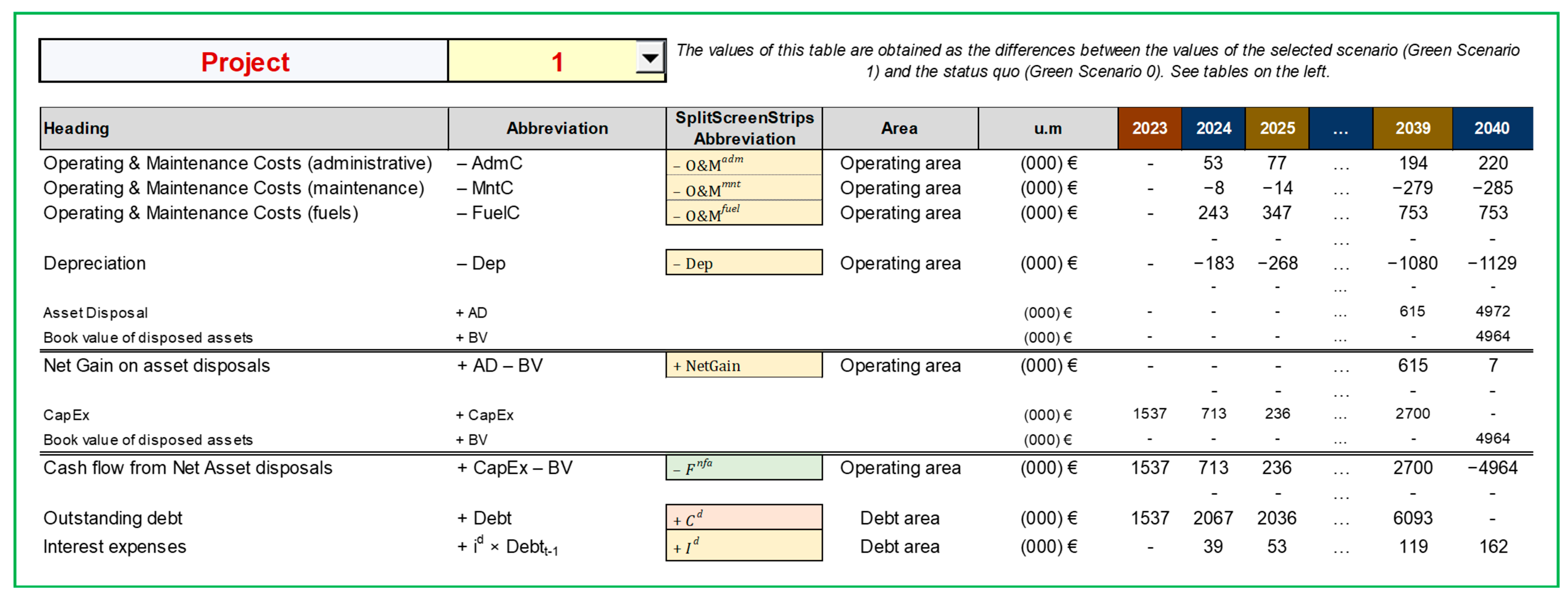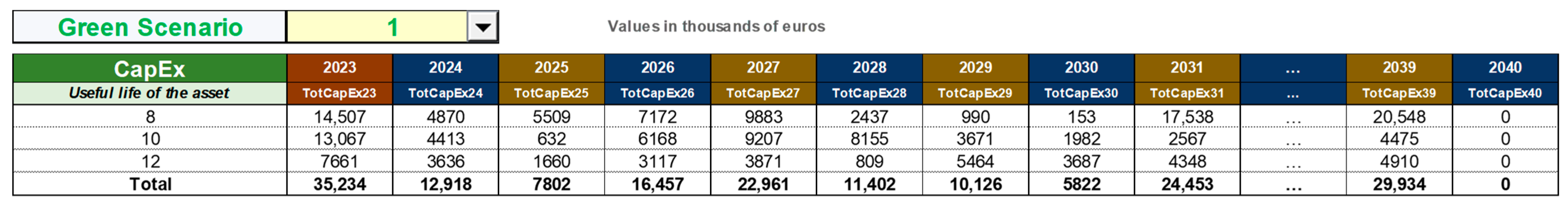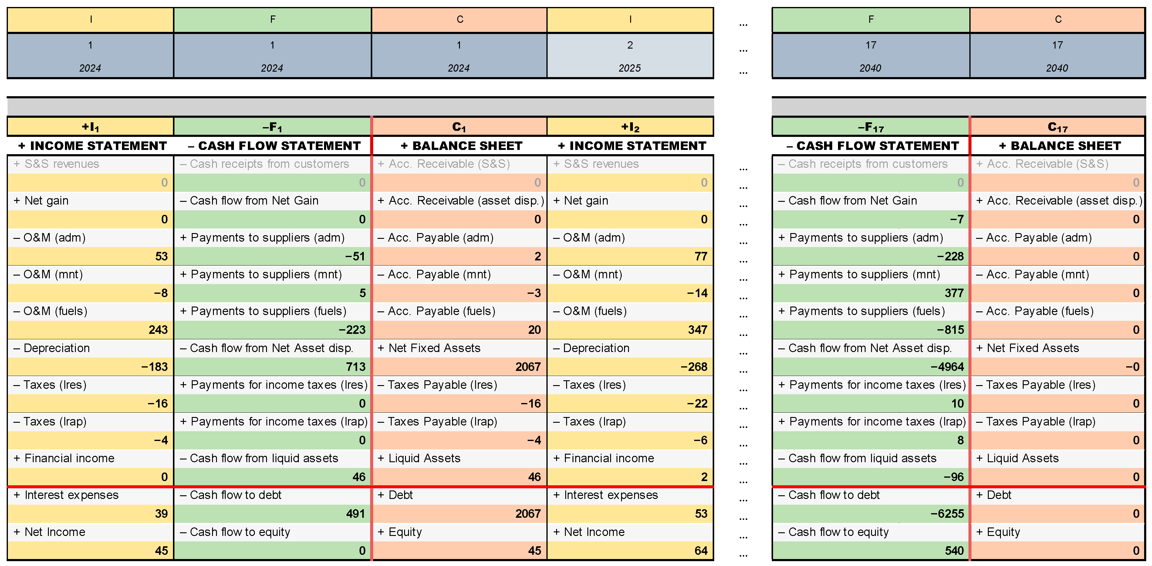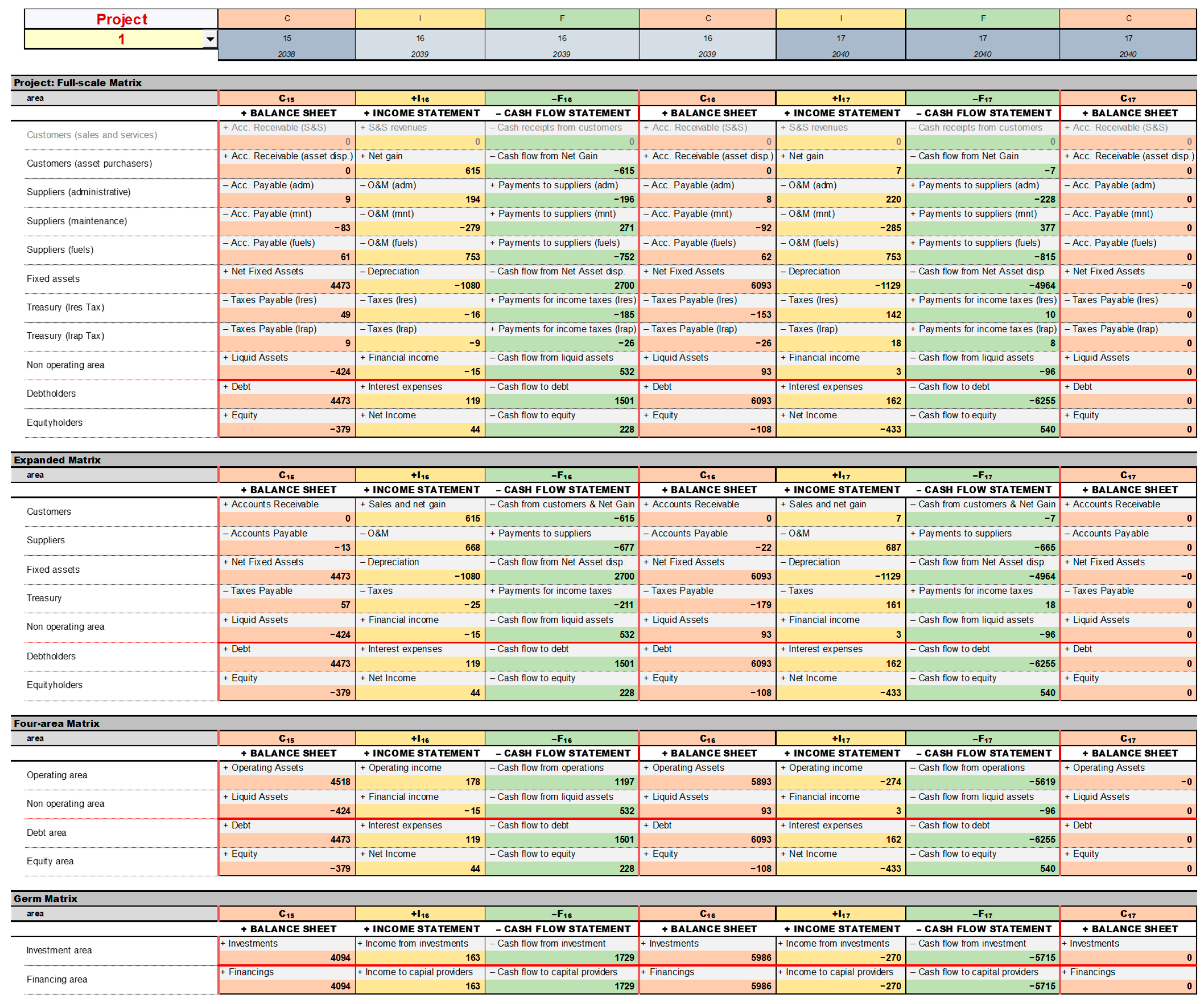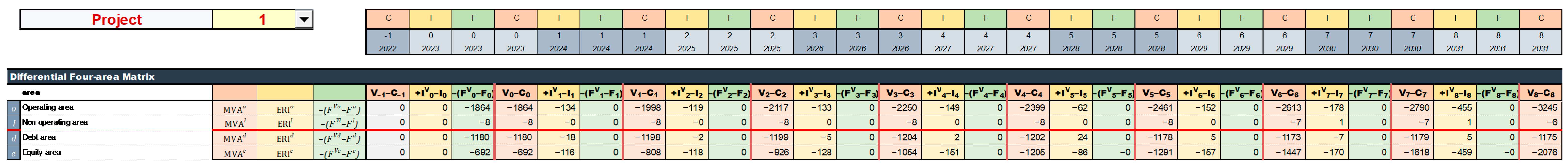 This automation ensures dynamic accounting consistency over time, eliminating the manual reconciliations typical of standard models. To our knowledge, no prior study has offered a financial valuation of comparable analytical complexity for a capital budgeting project of this scale.